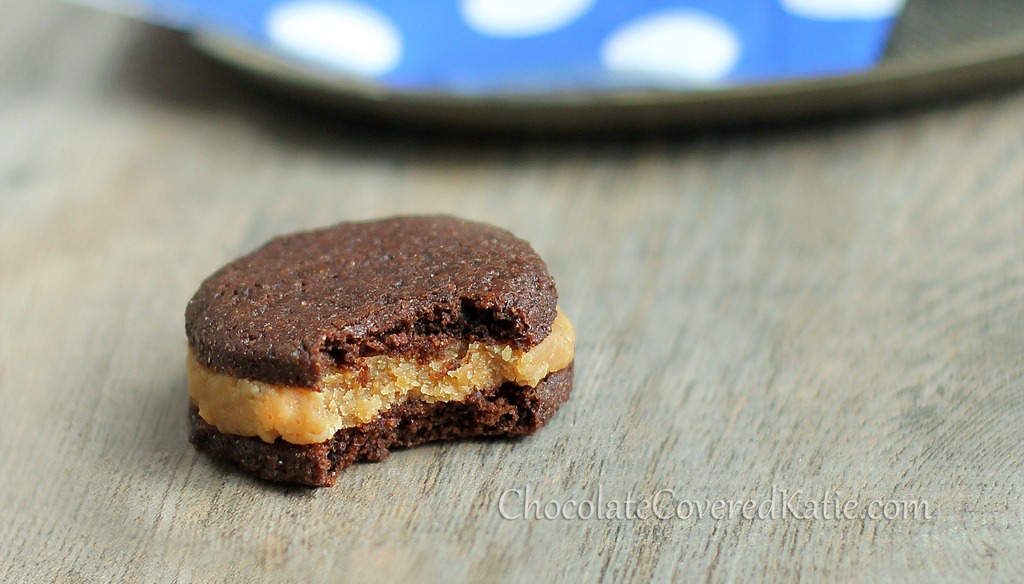 For the filling: first make sure your coconut butter is softened. Mix all filling ingredients in a small food processor (or very patiently with a fork, if you must. Texture might be a bit crumbly if you mix by hand; be sure to start with softened peanut butter). Divide filling among half of the cookie discs, then top with remaining cookie discs and fridge so filling firms up. Makes 20-25 sandwich cookies, depending on the size of your circle cutter and whether or not you bother to re-roll all the dough.